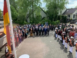 Na een kort welkom van Burgemeester Mark Slinkman, waarbij ook de ere wijn gedronken werd en het hijsen van de vlaggen was er een korte optocht door ons mooie Millingen. Daarna kon het schieten beginnen.